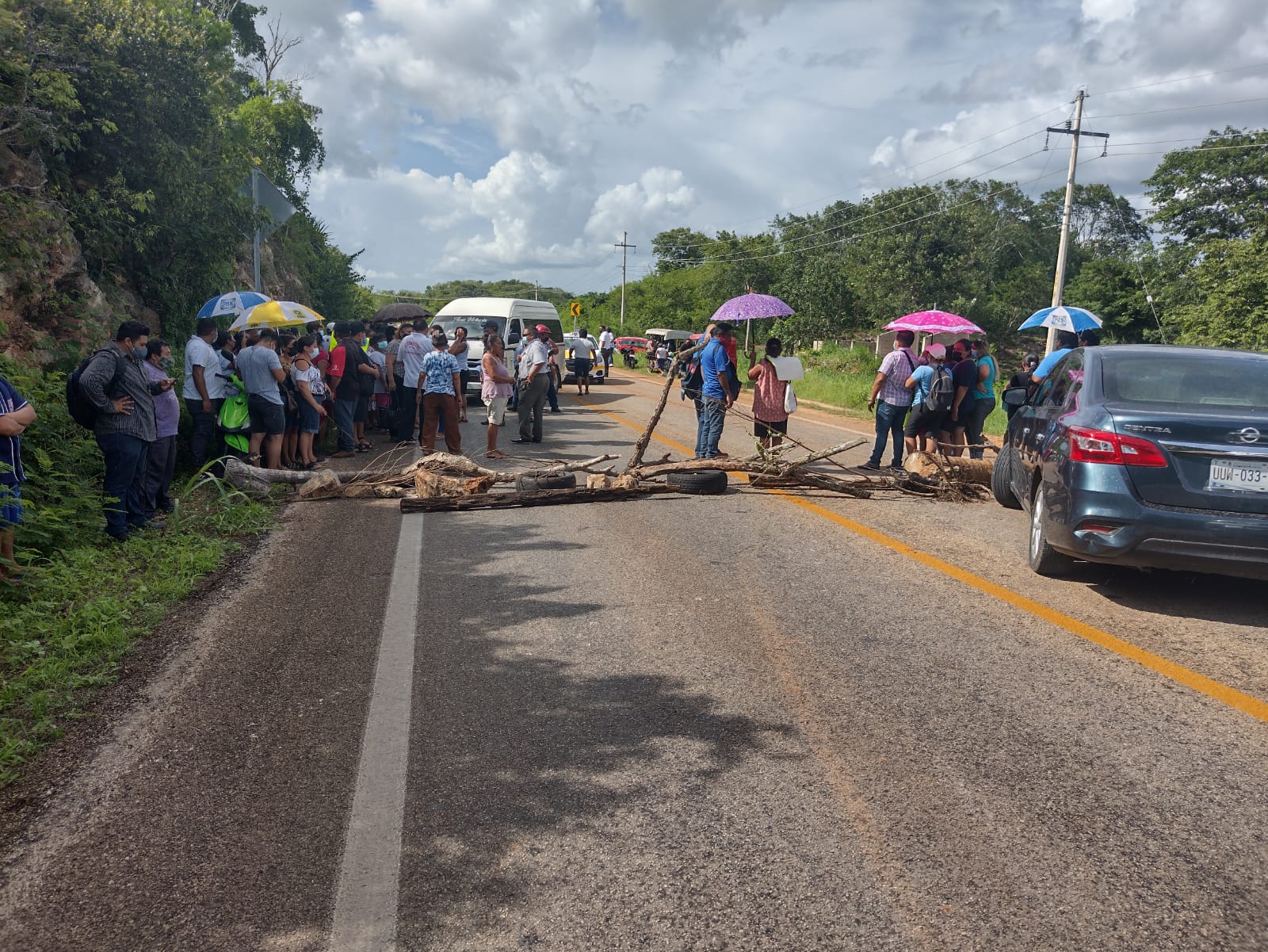 El bloqueo fue realizado en la salida sur de esta ciudad, en la zona conocida como “Las Curvas”, en donde cerca de 50 personas, entre trabajadores y sus familias, colocaron ramas y troncos sobre la vía asfáltica.