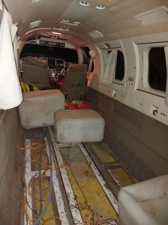 Se aseguró un jet bimotor blanco con franjas negras matrícula N217W. Tenía 22 bultos con cocaína con un peso aproximado a una tonelada.